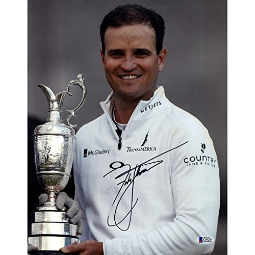 Zach Johnson Signed Close Up Holding Trophy 11x14 Photo Beckett