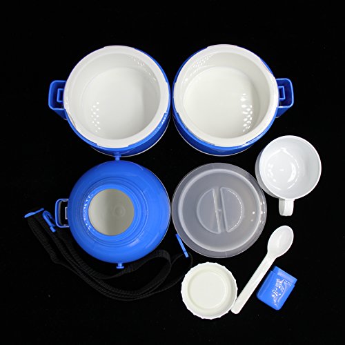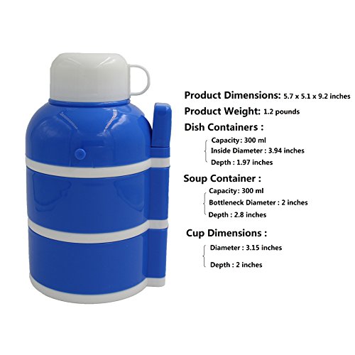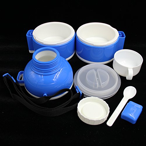 Lunch Jar for Kids - 2-dish & 1-soup Containers Plus 1-spoon - Fashion Leak-proof Insulated Bento Lunch Box - Healthy Food Grade Plastic Picnic Food Storage Boxes - 900ml/31oz Green and Blue (Blue)