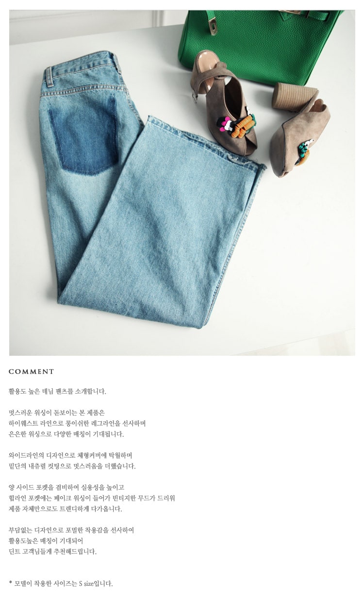 PJ332 메라 워싱 와이드 데님 팬츠 Blue