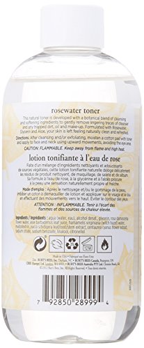 Important Information Ingredients Rosa damascena (rose) flower water, alcohol denat., glycerin, centaurea cyanus (cornflower) flower extract, aloe barbadensis leaf extract, hamamelis virginiana (witch hazel) leaf extract, yucca schidigera leaf extract Directions Apply toner to skin with a cotton ball after cleansing, keeping away from the eye area. Or, blot onto temples and forehead anytime throughout the day for cool, fresh, instant relief from hot, humid, polluted, stuffy and other stressful conditions. Product Description Tone your skin naturally with Burt's Bees® Rosewater Toner. Natural rosewater, known for its mild astringent properties and simply beautiful aroma, combines with aloe vera and glycerin in this gentle skin toner to remove lingering traces of dirt, oil and make-up. This 99.9% natural facial toner leaves your face feeling refreshed and is gentle enough to use every day. After applying toner, follow with your favorite Burt's Bees® face cream or lotion. Put the power of nature to work for your skin with Burt's Bees.