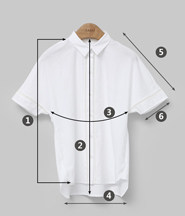 尺码 ①前衣长 ②后中长 ③胸围 ④下摆围 ⑤袖长 ⑥袖口围