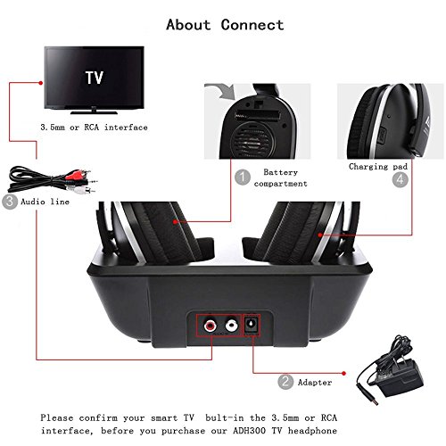 WIRELESS UHF TECHNOLOGY - Our 2.4GHz Digital Headphones use radio frequency signals and have an expanded reception range (up to 100ft) that does not require keeping the headphones within line of sight of the transmitter. Perfect for use with your TV, Computer or Hi-Fi radio.
