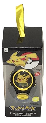 This is a cute boys watch with Pikachu across the entire face. The band is black, The face will light up for 10 seconds when you press the right corner button. The band also adjusts from 6-8 inches with 9 holes to fit your child just right. The best feature of the watch is a charm that will light up when you press the charm! Your child will LOVE this watch!Feature