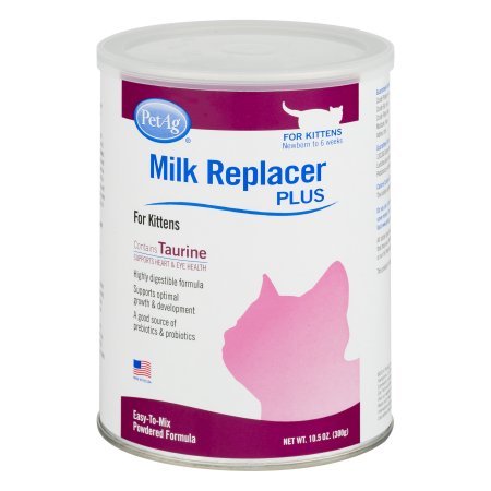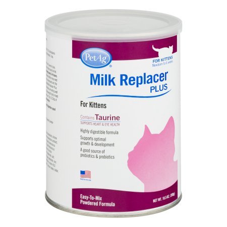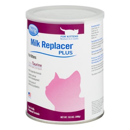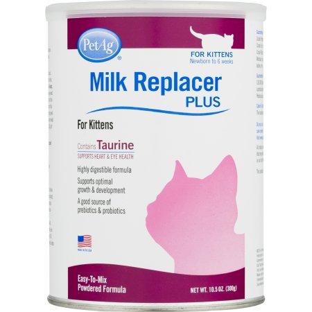 -. Binding : Misc. -. Brand : Pet Ag -. EAN : 0672823766878 -. Feature : Pet Ag Milk Replacer Plus for Kittens. Newborn to 6 weeks. / Contains taurine supports heart & eye health. Highly digestible formula. / Supports optimal growth & development. / Easy-to-mix powdered formula. Net Wt. 10.5 oz. (300 g). / A good source of prebiotics & probiotics. -. Label : Petag -. LegalDisclaimer : Actual product packaging and materials may contain more and different information than what is shown on our website. We recommend that you do not rely solely on the information presented and that you always read labels, warnings, and directions before using or consuming a product. -. Manufacturer : Petag -. PackageQuantity : 1 -. ProductGroup : Pet Products -. ProductTypeName : PET_SUPPLIES -. Publisher : Petag -. Studio : Petag -. Title : PACK OF 4- Pet Ag Milk Replacer Plus for Kittens, 10.5 OZ -. UPC : 672823766878