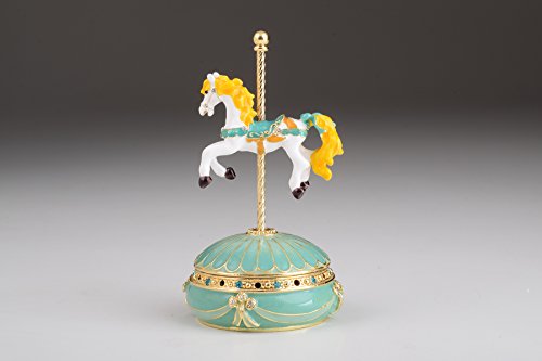 Turquoise Faberge Egg with Royal Horse Handmade Trinket Box Swarovski Crystals