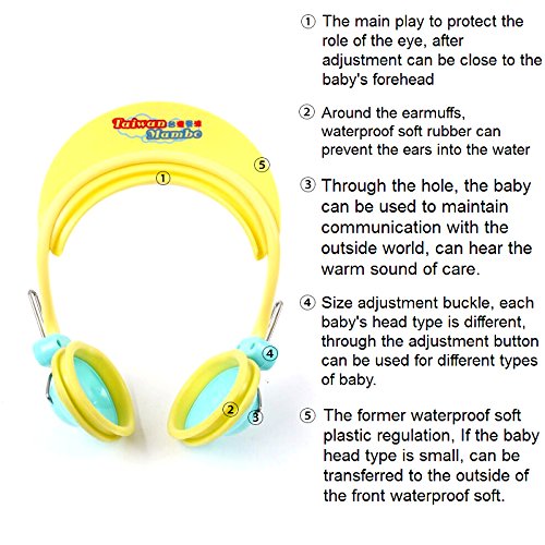 Children Earmuff Shampoo Bath Bathing Shower Cap Hat Wash Hair Shield for Baby Boys Girls (yellow)