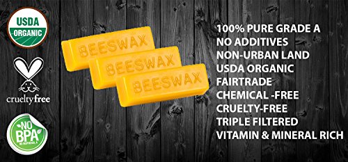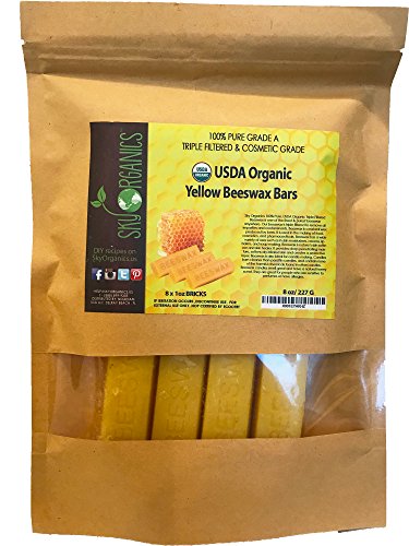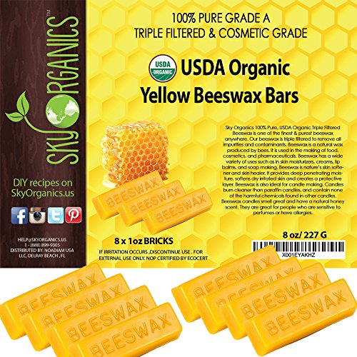 100% PURE USDA ORGANIC Certified Beeswax By Sky Organics - Premium Quality Cosmetic Grade Triple Filtered Grade A Bars-created under the strict organic guidelines set forth by the USDA - Created naturally by healthy honeybees in a NON-GMO, pesticide free environment