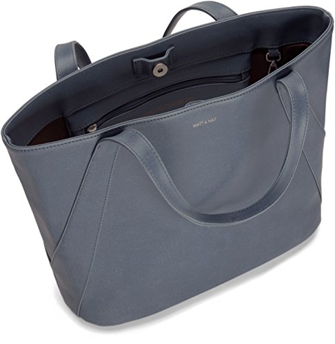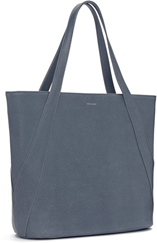 Tote with magnetic snap closure. INTERIOR: logo-embossed hanging pouch pocket, small dogclip. 100% recycled nylon lining.