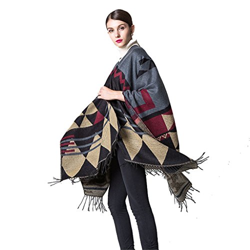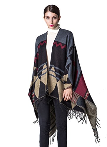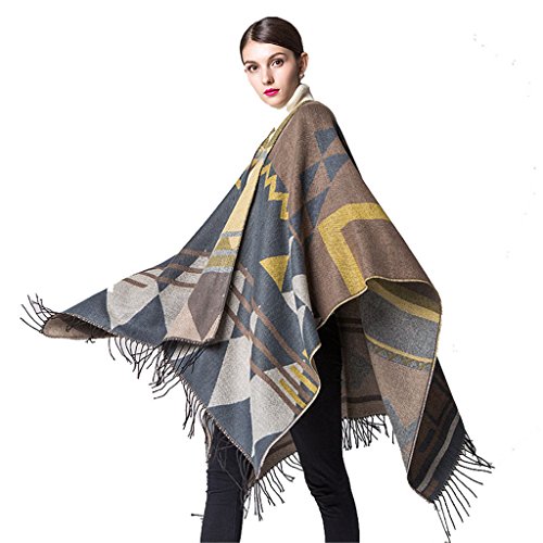 | (REWANGOING)/Accessories/Scarves/DIRECT FROM USA/Women's Fashion Trendy Plaid Pattern Wrap Shawl Cardigan Poncho Cape |