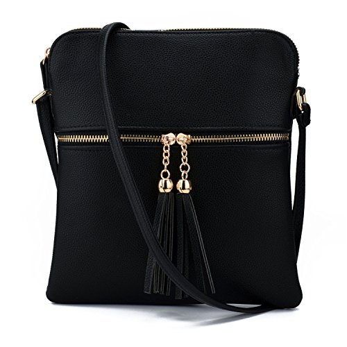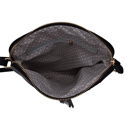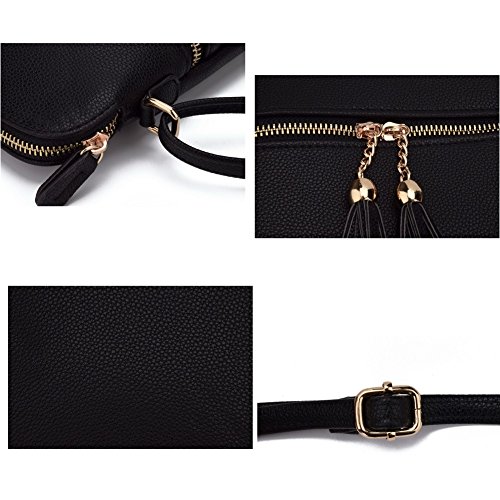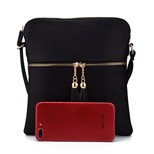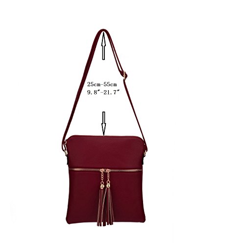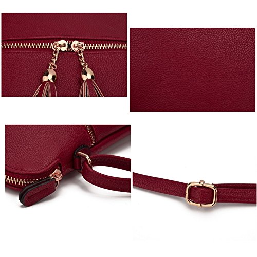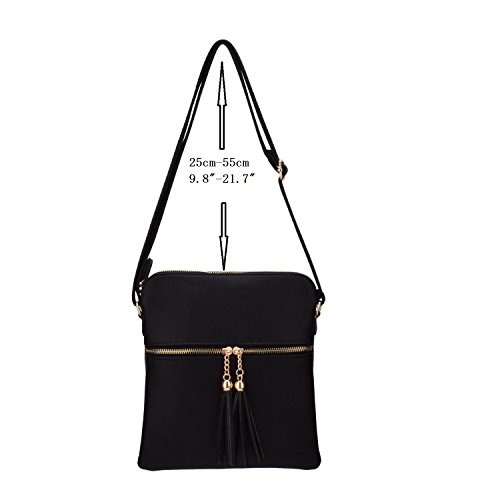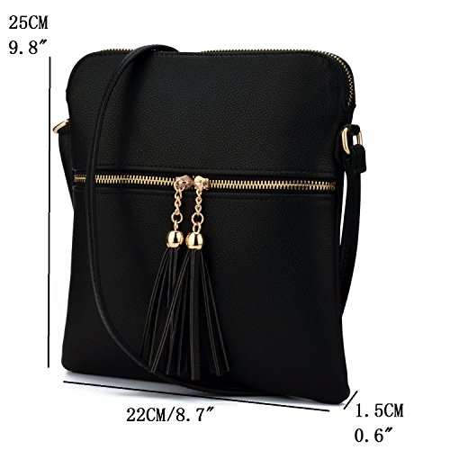 JIARUO Double Tassel Zipper Designer Women PU Leather Messenger Crossbody Bags Handbag Purses