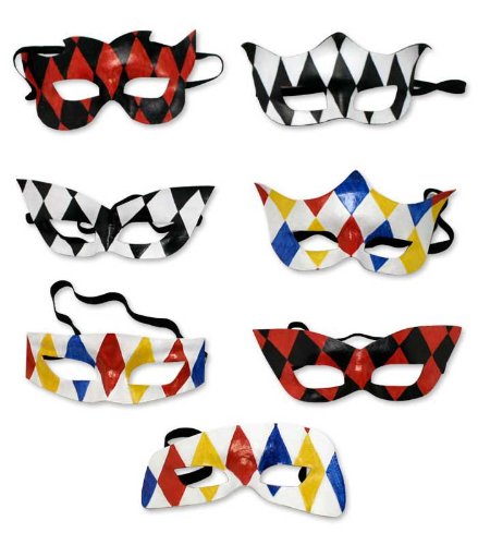 NOVICA Carnaval Decorative Leather Mask, Multicolor, 'Pierrot' (set of 7)