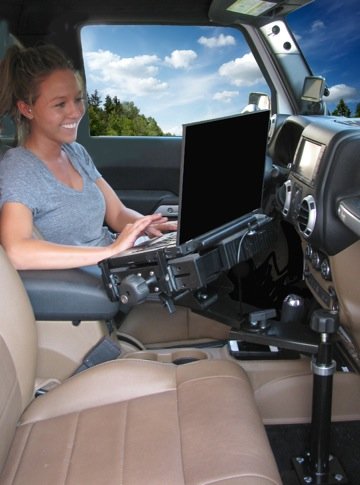 -. Binding : Electronics -. Brand : Mobile Desk -. EAN : 0744752150629 -. Feature : Expandable Locking Laptop Tray / Adjusts Quickly for Any User / Locking UP.R.Ights / Ergonomic Design Reduces Cumulative Injuries / Built in Ventilation Keeps your Laptop Safe / Protects You and your laptop / Height Adjust from 16" to 36" / Fully Adjustable Double Articulating Arm / Arm Reach from 6" to 21" / Thick Walled DOM Steel UP.R.Ight / 1' x 55 Durometer Shock Pads / 1/4" Ventilation Gap / Clevis Tilts 45 Degrees / Theft Prevention System is Standard / Reinforced Laptop Hold Down Clips / Built in Stabilizers Come Standard / 5 Year Warranty / Red Design / Perfect for any Terrain / Anti-Shock Design Protects Hardware / Universal Drill Base Mount Standard / Optional Screen Holder Available and/or P.R.Inter Stand Available -. Label : Mobile Desk -. Manufacturer : Mobile Desk -. PackageQuantity : 1 -. ProductGroup : PC Accessory -. ProductTypeName : COMPUTER_ADD_ON -. Publisher : Mobile Desk -. Studio : Mobile Desk -. Title : Tough Desk Ultra with No-Drill Laptop Base for the Jeep Wrangler -. UPC : 744752150506