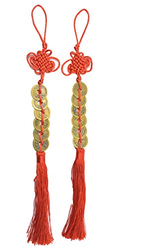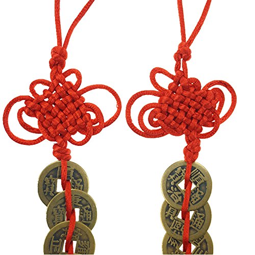 Chinese Red Endless Knot Feng Shui Coins With 6 Coins For Wealth And Health-2 Pack