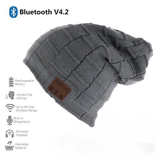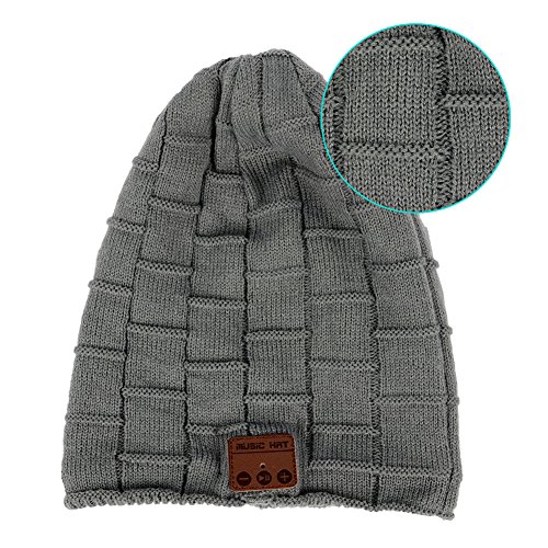 Happy-top Wireless Bluetooth Beanie Hat 4.2 Unisex Winter Warm Knitted Hat Trendy Cap with Stereo Headphone Headset Speaker Mic Hands-free for Sports Workout Best Christmas Gifts (Lattice Dark Gray)