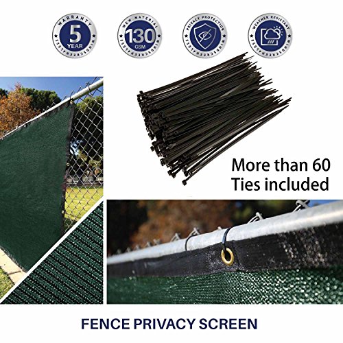 - PERFECT SIZE & WEATHER RESISTANT BREATHABLE MATERIAL: Green fence privacy screen measures exactly 50' long x 5'8" tall, this privacy fence screen is perfect fit for a fence that’s 6 ft tall; wind screen fabric weave of new high density material waterproof polyethylene; shade tarp with grommets allows maximum air to go through to create breeze, greatly reduces wind at ground level; great privacy screening at right angles; sunshade prevents harmful UV sun lights from damaging for up to 90%.