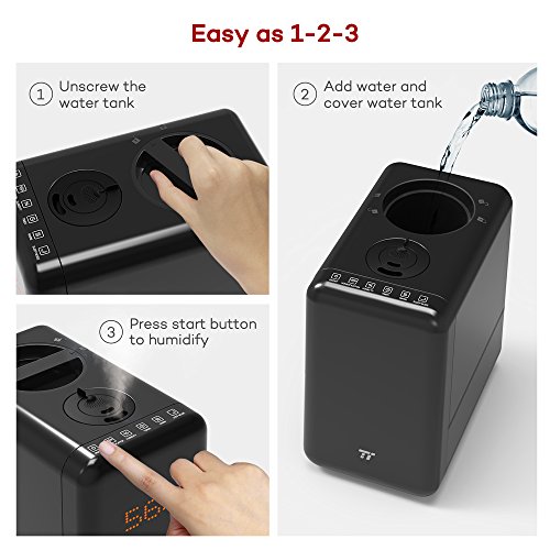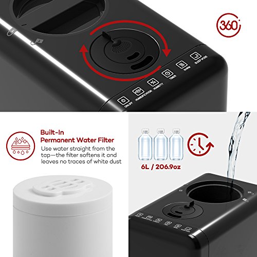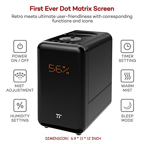 Top Fill Humidifier, TaoTronics Warm & Cool Mist Humidifier, 6L Capacity & Easy Clean with Wide Opening, Permanent Filter, Humidity Monitor & Timer for Large Room