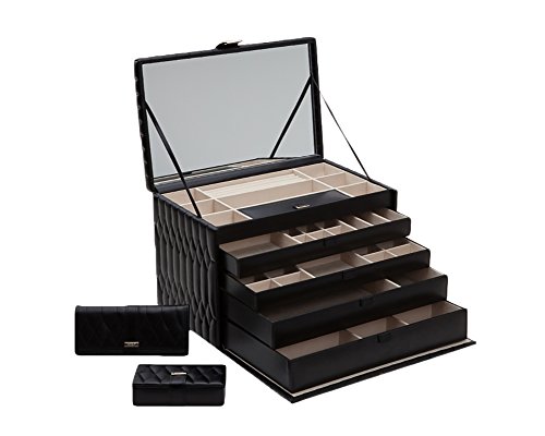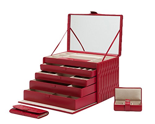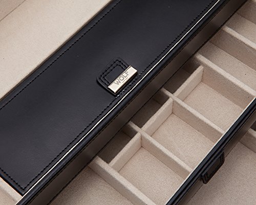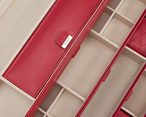 -. Brand : WOLF -. Feature : Leather Tassel Key Chain / Tan LusterLoc anti-tarnish lining / Full Vanity Mirror / Removable jewelry roll and Small Travel Case / Multiple pull out storage compartments -. Label : WOLF, Inc. -. Manufacturer : WOLF, Inc. -. Model : 3295 -. PackageQuantity : 1 -. ProductGroup : Kitchen -. ProductTypeName : KITCHEN -. Publisher : WOLF, Inc. -. Studio : WOLF, Inc. -. Title : Wolf Caroline Extra Large Jewelry Box -. Warranty : One Year Manufacturers Warranty
