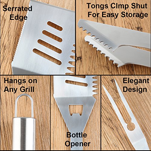 - Heavy Duty Material: All three cooking tools are made of strong, durable, 2CR14 material that won’t bend or break, and will be long lasting summer afternoon companions.