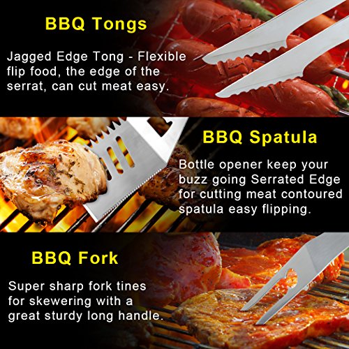 - 3 Pieces Grill / BBQ Accessories Set: This barbecue tool set includes a grill tongs, a grill fork, and a 3-in-1 bbq spatula.