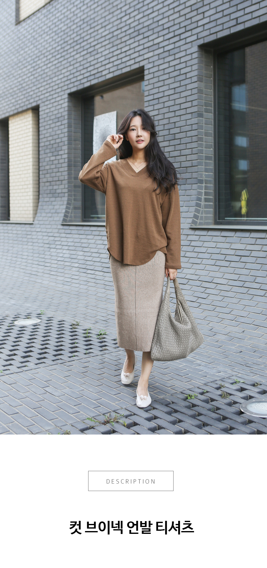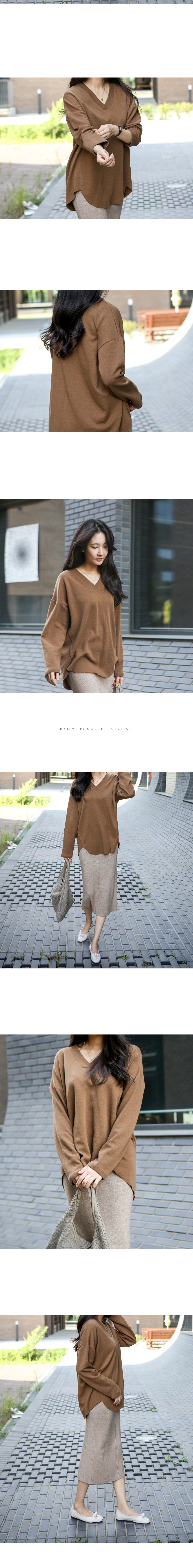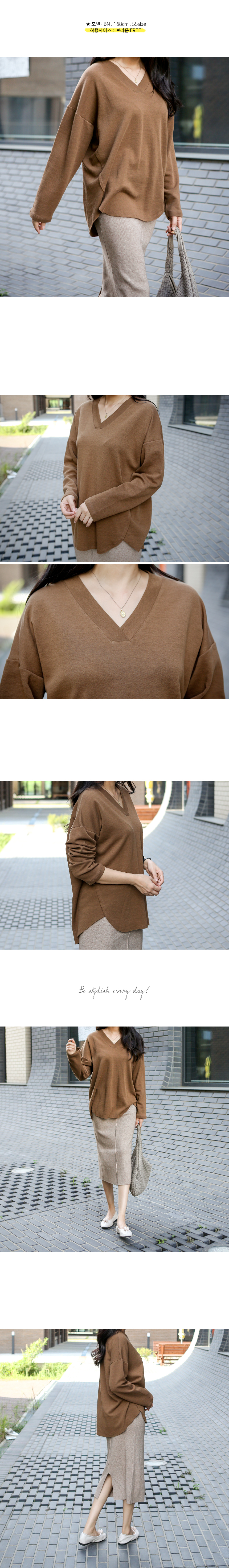목선을 예쁘게 돋보여주는 과하지 않은 브이넥 라인이