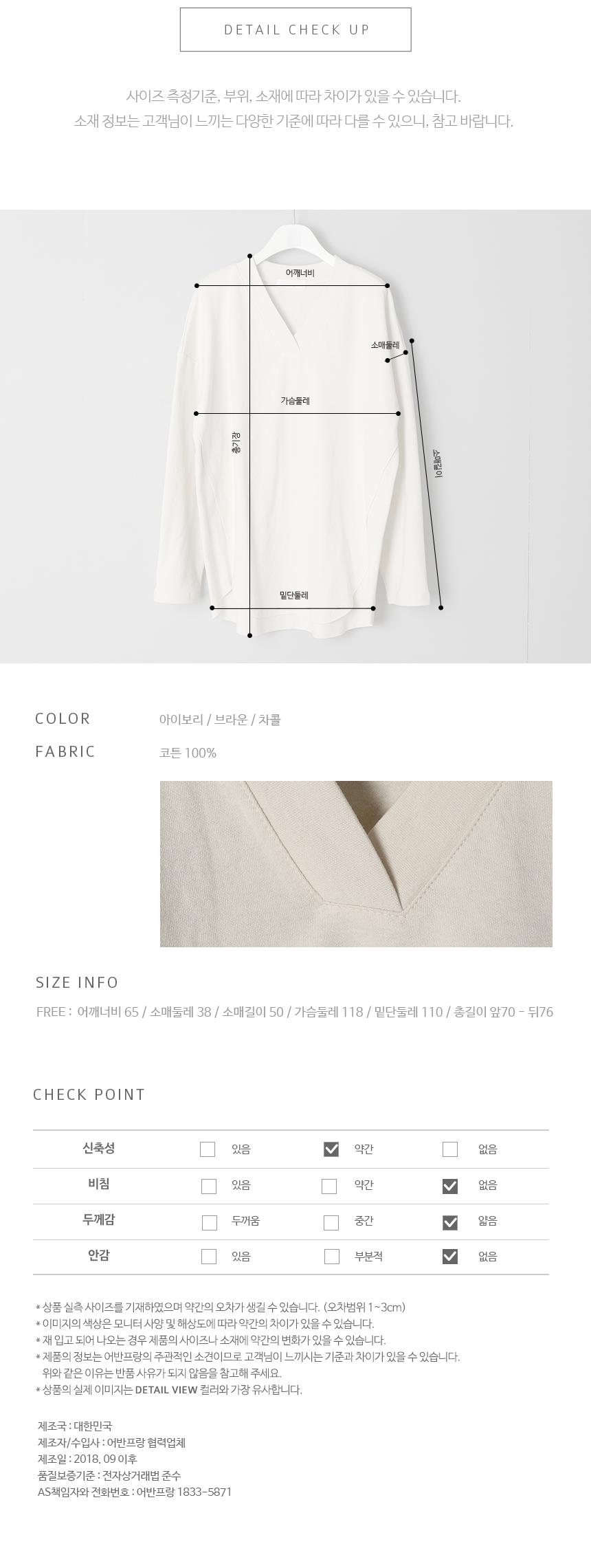 코튼 100%의 소재감이 가볍고 부드러워