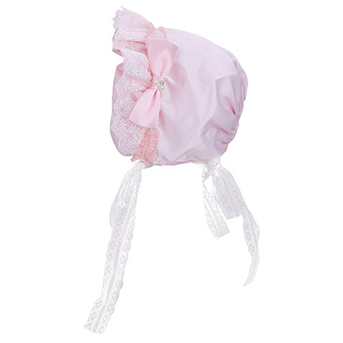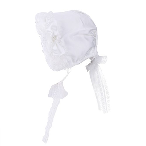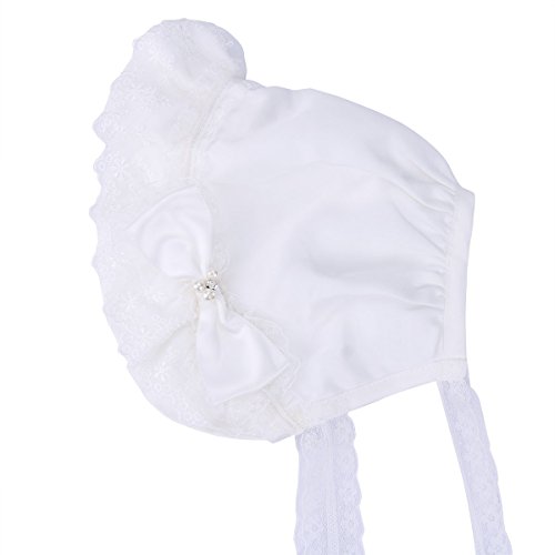 iEFiEL Baby Girls Tie up Lace Flower Bow Christening Bonnet