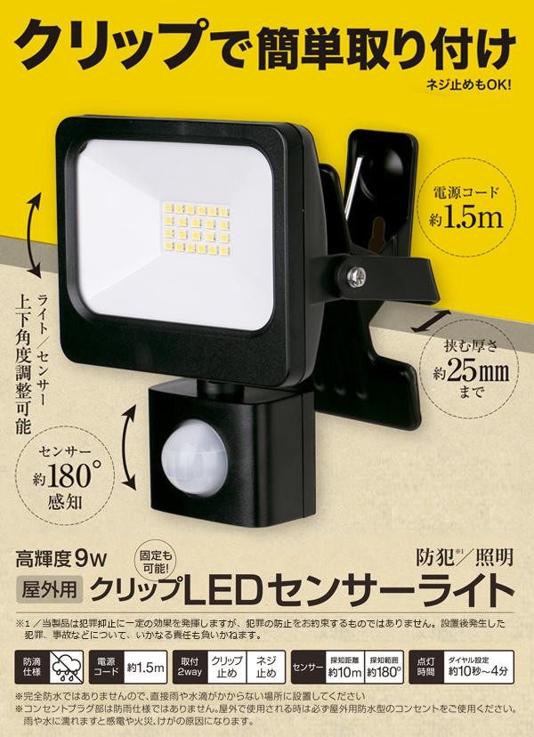 | クリップで簡単に取り付けできるセンサーライト!! |