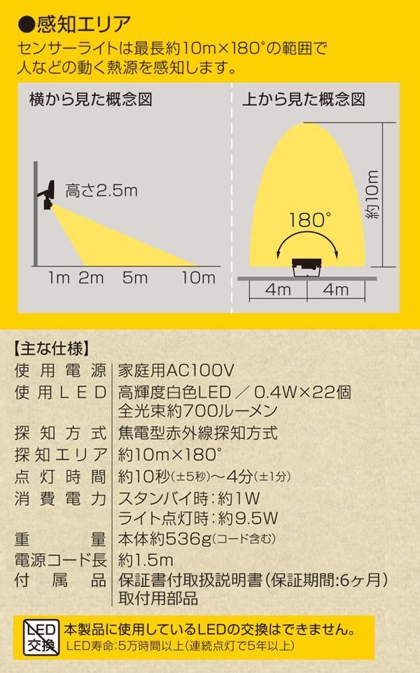 | 面倒な電池交換や天候に左右されないコンセントタイプのLEDセンサーライトです。防滴仕様なので玄関や軒下などに設置が可能。クリップで固定するタイプなのでDIYに慣れていない方も簡単に取り付けられます。 |