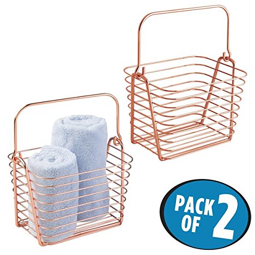 mDesign Bathroom Wire Basket Tote with Handle for Shampoo, Conditioner, Soap, Cosmetics - Pack of 2, Copper