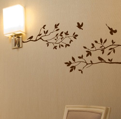 Tree Branches Wall Decal with Birds Vinyl Sticker Nursery Leaves 40" Wide X 18" High As Shown (Matte Brown)