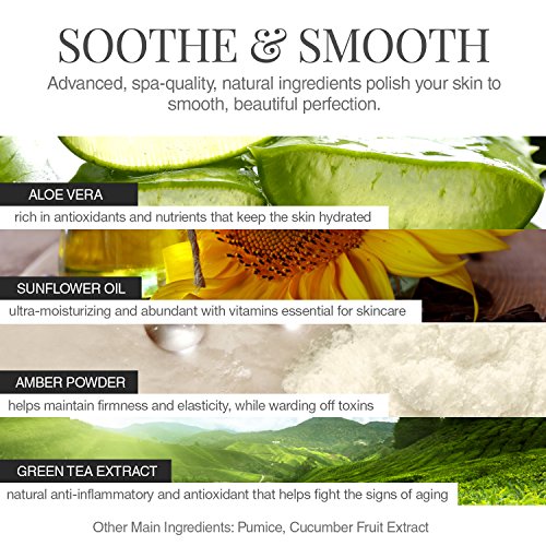 ♦ Pumice - Finely ground porous volcanic rock sloughs away dry skin. It gently exfoliates without scratching or damaging.