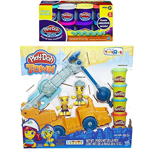 Bundle of 2 Items: Play Doh Town Power Crane Playset and Play Doh Plus Compound