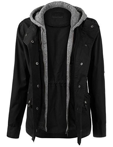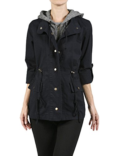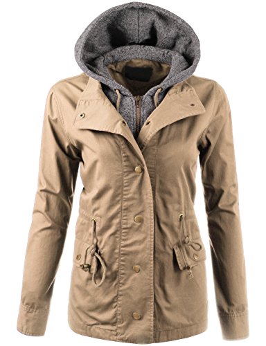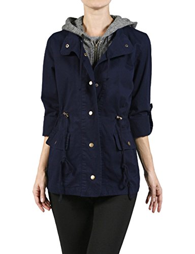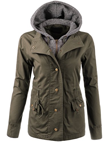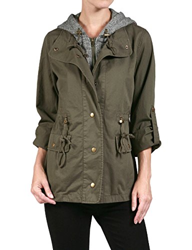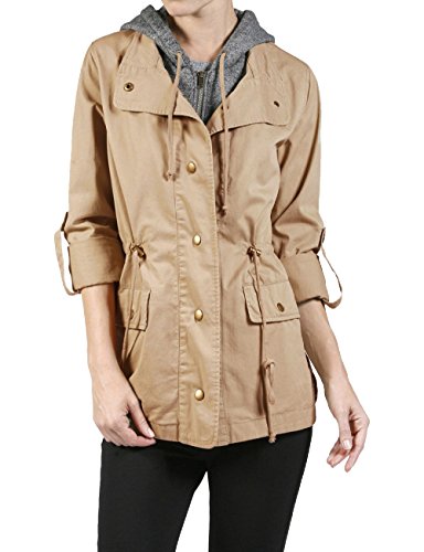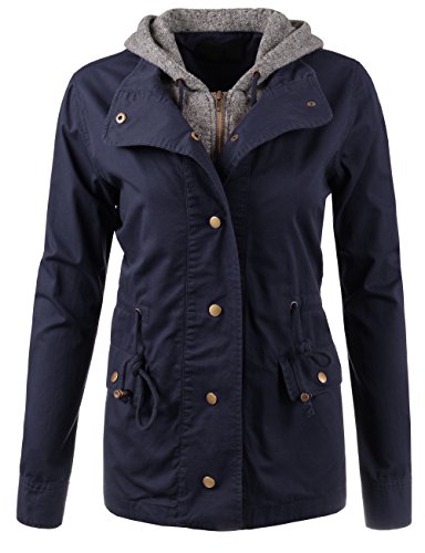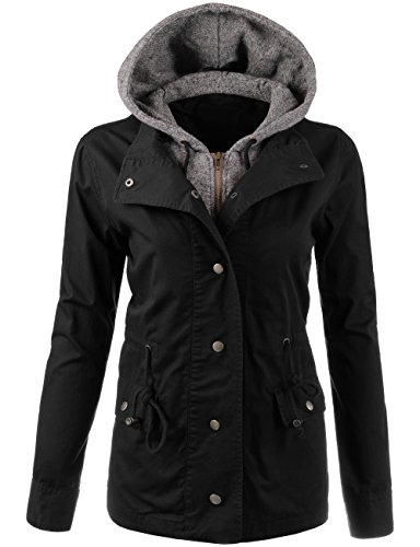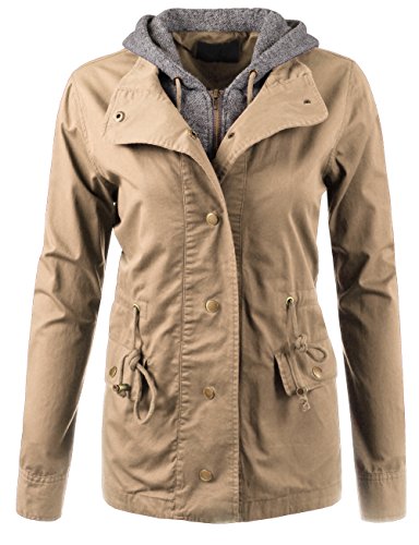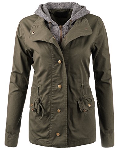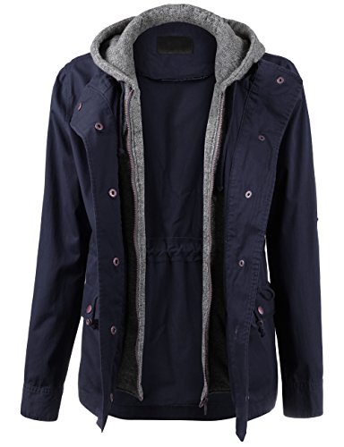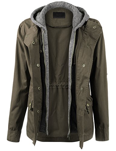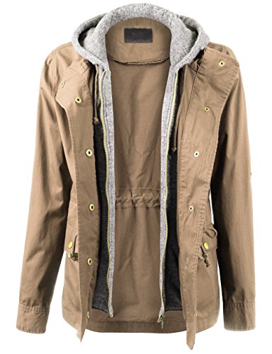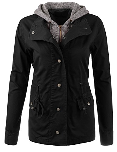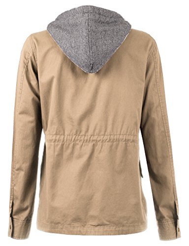 Binding : Apparel Product Description Classic military inspired anorak jacket with two tone midweight terry contrast front zipper and hood detail will provide versatile look. Conveniently featured adjustable waist drawstring and functional snap button flap pockets to provide enough cargo for your personal belongings. This is the item you must have regardless of season to meet your fashion forwarded yet classic outfit - pair this with your favorite vintage top with leggings for trendy yet simple classy appearance. Sizing information - all sizes are measured in flat - lay it flat and measure across the garments - Small - Shoulder: 16in Cheset: 20in Length: 26in Sleeve: 24in / Medium - Shoulder: 16.5in Cheset: 21in Length: 26.5in Sleeve: 24in / Large - Shoulder: 17in Cheset: 22in Length: 26in Sleeve: 24.5in 0