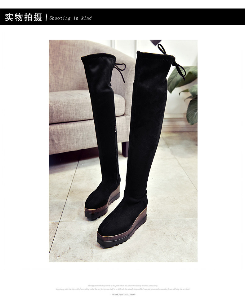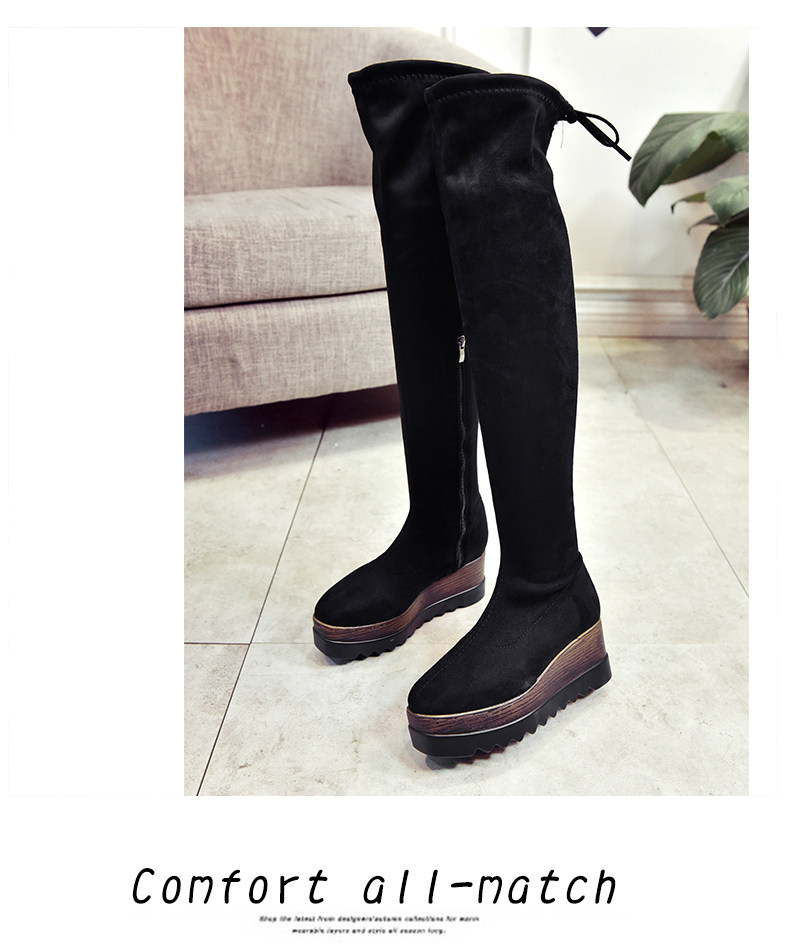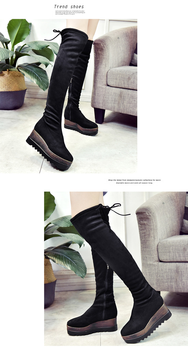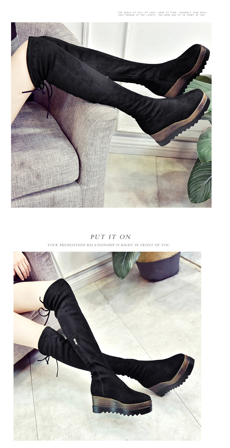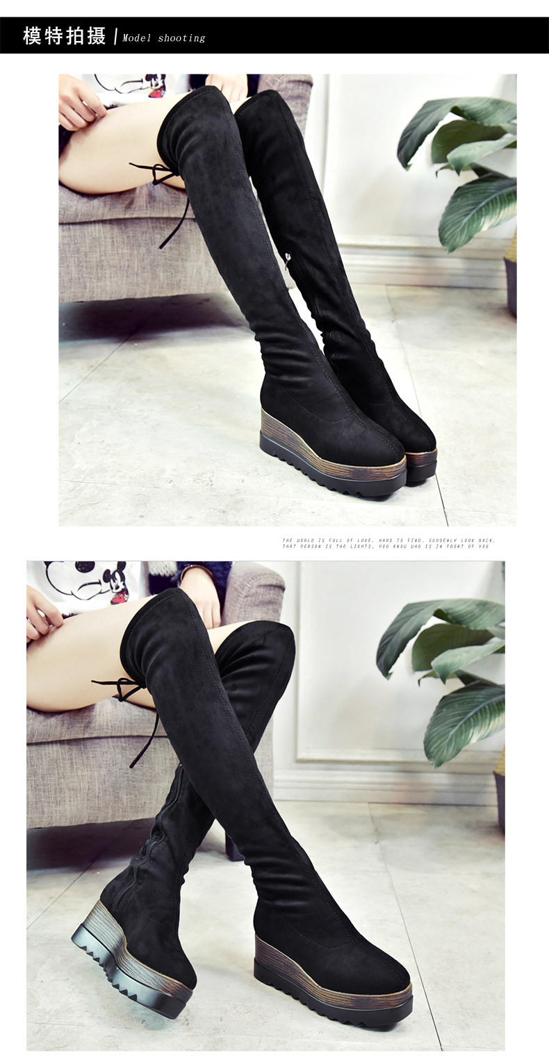 过膝长靴女高筒靴秋冬新款坡跟高跟靴百搭弹力靴骑士靴女靴子