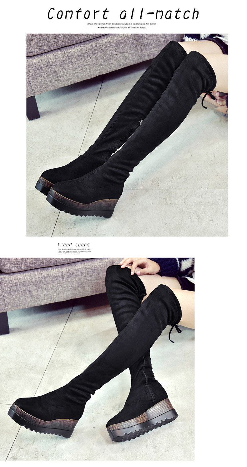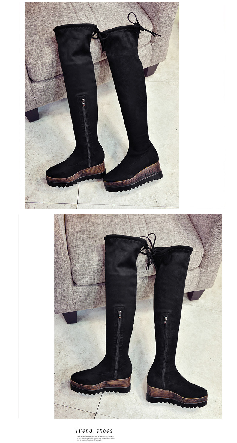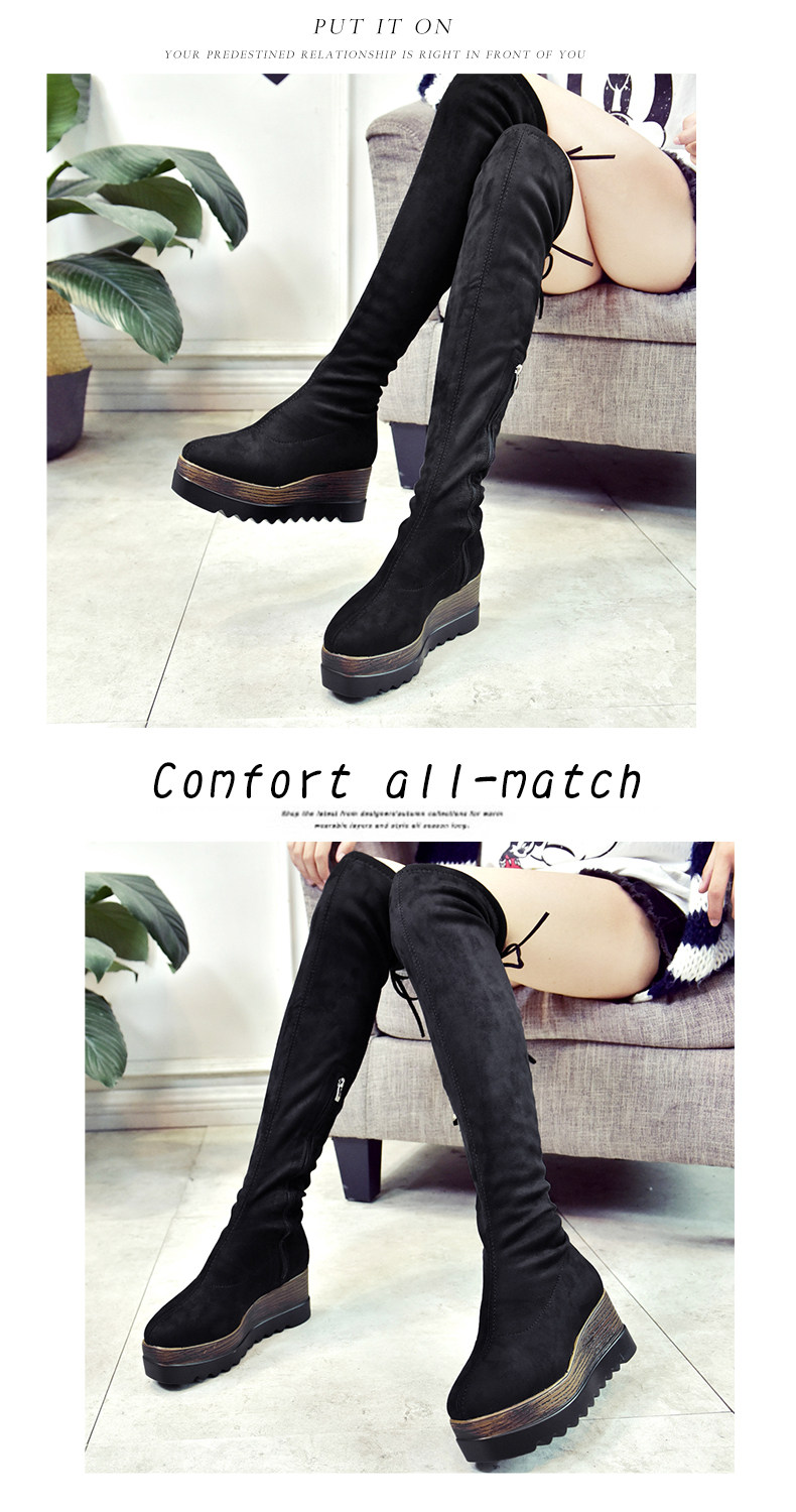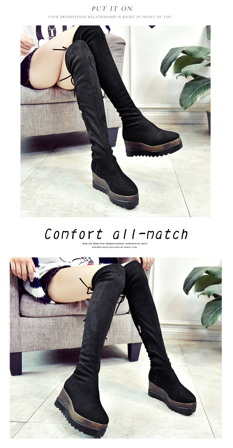 过膝长靴女高筒靴秋冬新款坡跟高跟靴百搭弹力靴骑士靴女靴子