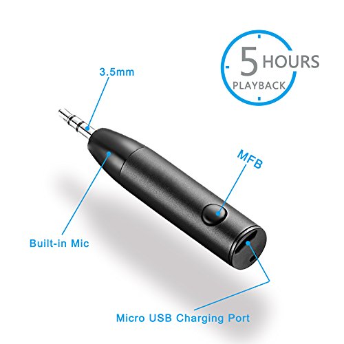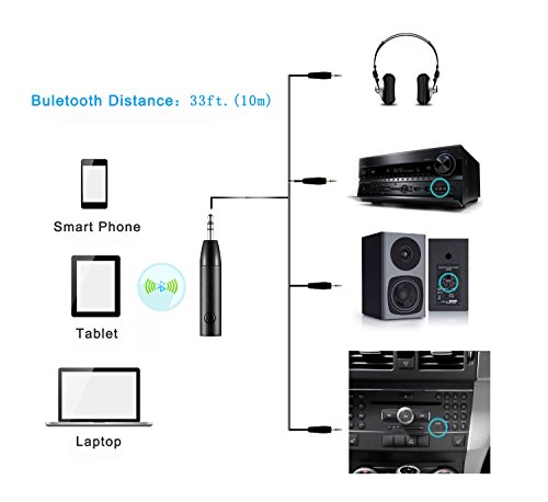 ※【MAGIC FUNCTION】: Use it connect 3.5mm headphone jack to make your headset become wireless bluetooth headphone. Just one second to make your speakers become bluetooth speaker.