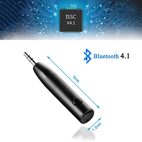 Bluetooth Receiver Adapter, Bullet Style Aluminum Wireless Mini Bluetooth 4.1 with Built-in Mic Bluetooth for 3.5mm AUX Audio Music Headphone/ Car Audio/ Speaker/ Home Stereo/PC/ Earbuds (Black)