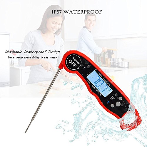 - SPECIAL DURABLE DESIGN & IP67 WATERPROOF: The unique wave design to better hold the cooking thermometer when you use it. With the waterproof design the item can survive an accidentally fall into water. The waterproof level highs up to IP67. The back of the product can withstand splash water. No more worried about cleaning problems.