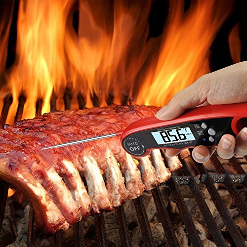 Digital Food Thermometer,Sunandy Cooking Instant Fast Read Electronic Meat Thermometer with Probe for Kitchen Outdoor Cook, BBQ, Poultry, Grill Food, Waterproof & Auto On/Off[Battery Included] (Red)