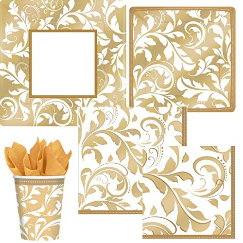 -. Title : Golden Wedding Bridal Shower Wedding Anniversary Party Supply Pack! Bundle Includes Paper Plates, Napkins & Cups for 8 Guests