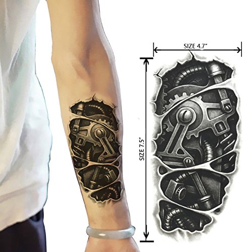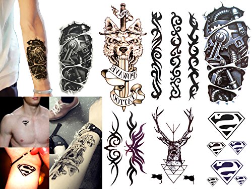 SMILCO 6 Sheets Temporary Tattoos Metallic For Man Fake Tattoos Sticker For Guys for Men Mechanical Arm Elk Wolf Totem Superman