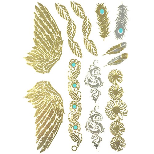 Wrapables Celebrity Inspired Temporary Tattoos in Metallic Gold Silver and Black, Large, Angel Wings_1