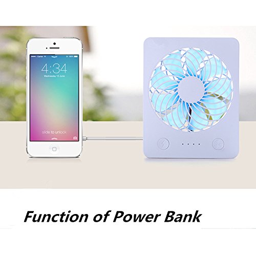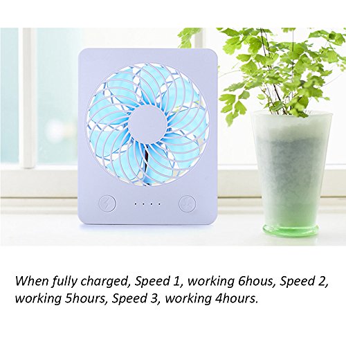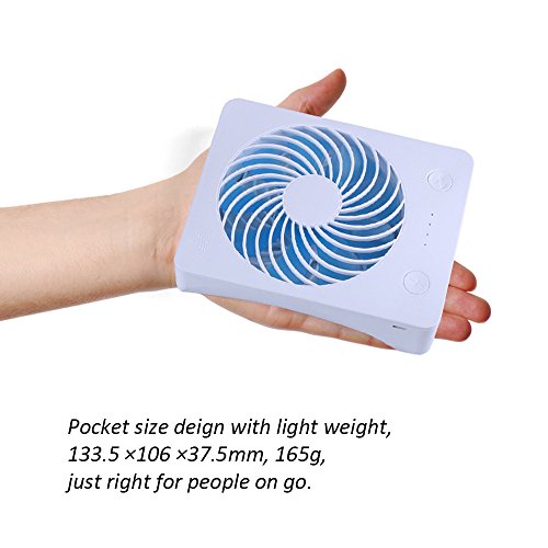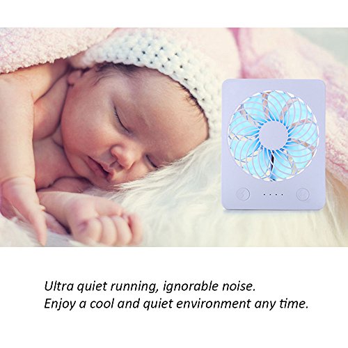 Mini USB Desk Fan RUNNEPT Portable Rechargeable Fan Battery Powered with Power Bank 4” 3 Speeds Adjustable(Blue)