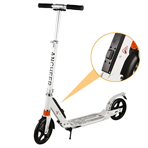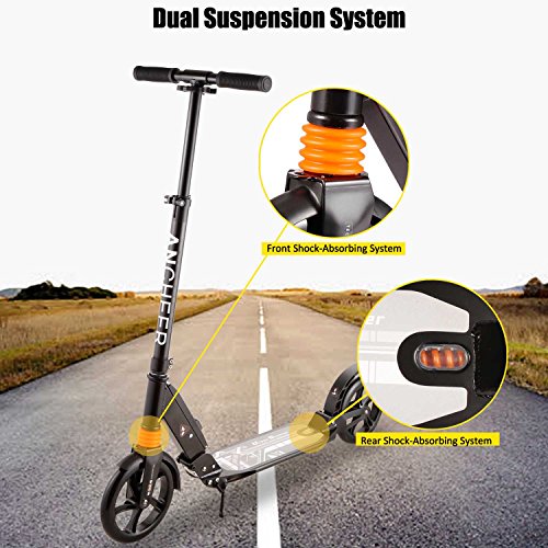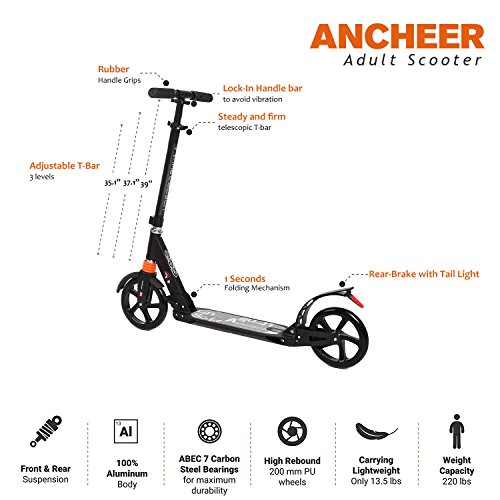 -. Title : Ancheer Adult Teen Kick Scooter with Dual Suspension, 2 Big Wheels | Easy-Folding Adjustable Height Commuter Street Push Scooter for City Urban Riders, Supports 220lbs Weight