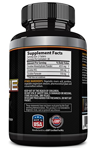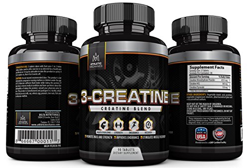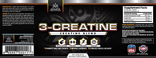 You're working out hard at the gym on a regular basis, but are you getting the results that you're hoping for? If you're hoping to increase your muscle size and strength, nutritional support will be of the utmost importance, and Athletic Mechanics 3-Creatine Blend can help provide the fuel that you need to affect change and start building the lean, strong physique you deserve. Athletic Mechanics 3-Creatine Blend is unlike other creatine supplements on the market in that it contains not just one, but three types of creatine: creatine monohydrate powder, creatine hydrochloride and creatine pyruvate. All three varieties of creatine have been proven in clinical studies to provide benefits for athletes, bodybuilders and fitness enthusiasts, and you can easily incorporate them into your diet with our supplement. Made in the USA at a GMP-certified facility, Athletic Mechanics 3-Creatine Blend is a supplement of incredibly high quality. By providing essential nourishment for the muscle tissue, the supplement promotes gains in muscle mass and strength in response to exercise. In addition, creatine enhances endurance, so you can work out for longer with less fatigue. Plus, creatine supports muscle recovery, helping your body repair stress and strain done to the muscles during your workouts. For best results, Athletic Mechanics 3-Creatine Blend should be used for a cycle with four weeks on and four weeks off. Get on the path to accomplishing your fitness goals now! Purchase your 90-tablet supply of our cutting-edge formula with three types of creatine today.Feature