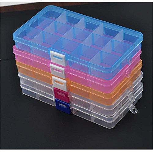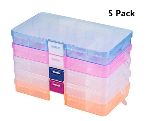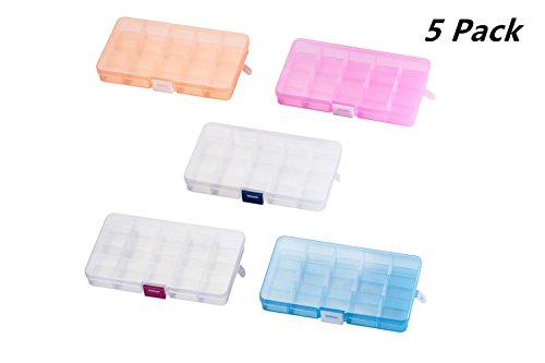 K2ger 5 Pack Adjustable Jewelry Dividers Storage Box Container Case Bead Organizer 15 Grids