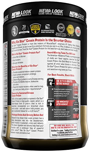 -. Binding : Health and Beauty -. Brand : Six Star -. EAN : 0785923530758 -. Feature : Includes slow-digesting casein / Helps feed your muscles with a continued flow of amino acids / Perfect to take between meals and before bed / Features another powerful, university-studied key compound shown in helping to build more lean muscle -. IsAdultProduct : 0 -. Label : Iovate Health Sciences Incorporated -. Manufacturer : Iovate Health Sciences Incorporated -. MPN : na -. NumberOfItems : 1 -. PackageQuantity : 1 -. PartNumber : na -. ProductGroup : Health and Beauty -. ProductTypeName : HEALTH_PERSONAL_CARE -. PublicationDate : 2015-06-15 -. Publisher : Iovate Health Sciences Incorporated -. ReleaseDate : 2015-07-09 -. Studio : Iovate Health Sciences Incorporated -. Title : Six Star Casein Protein Drink, Chocolate, 2 Pound, 32 Ounce -. UPC : 785923530758