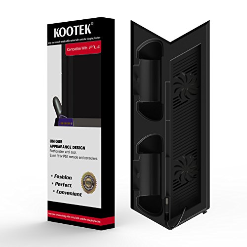 -. Binding : Electronics -. Brand : Kootek -. EAN : 0702168107477 -. ESRBAgeRating : Rating Pending -. Feature : All-In-One: console vertical stand for PS4 slim / regular PS4+ cooler+ dualshock charging station+ USB HUB / Features 2 built-in fans keep your game console cool and calm, no more overheating after long hours of game playing; / It is space saving that allows game console to be used safely in a vertical position; / Charging station with 2 charger ports to charge both of your game controllers simultaneously; Note: Charger will stop working when console off/sleep mode. / 2 HUB and 1 USB ports allows for connecting mouse, keyboard and other USB devices. Not recommended for charging. ( Please note this item not fits PS4 Pro console. Game console, controllers are not included. ) -. HardwarePlatform : PlayStation 3 -. IsAdultProduct : 0 -. Label : Kootek -. Manufacturer : Kootek -. Model : CLP07 -. MPN : FBA_CLP07 -. PackageQuantity : 1 -. PartNumber : FBA_CLP07 -. Platform : PlayStation 4 -. ProductGroup : CE -. ProductTypeName : VIDEO_GAME_ACCESSORIES -. Publisher : Kootek -. Size : 2015 Edition -. Studio : Kootek -. Title : Kootek Vertical Stand with Cooling Fan for PS4 Slim / Regular PlayStation 4, Controllers Charging Station with Dual Charger Ports and USB HUB for Console Dualshock 4 Controller ( Not for PS4 Pro ) -. UPC : 702168107477