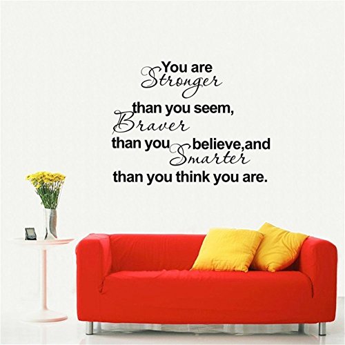 -. Title : Amaonm® Removable Vinyl Saying You Are Stronger Than You Seem Wall Decal Quotes Wall Sticker Murals Peel Stick for Kids bedroom Boy and Girls Study Room Playroom Bathroom