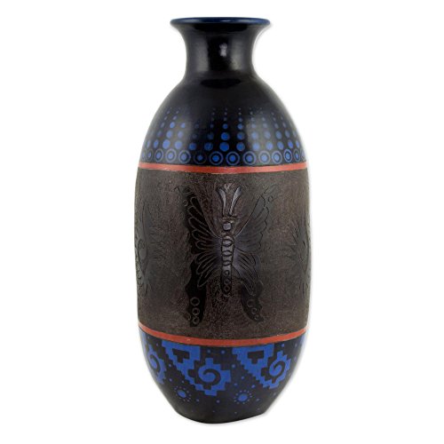 NOVICA Animal Themed Large Ceramic Vase, Black and Blue, 'Angangueo Night'